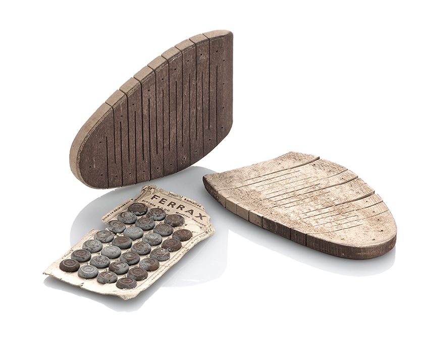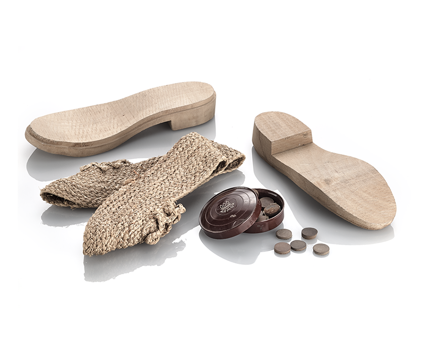 Alors qu'ils étaient de l'ordre de la banalité entre 1940 et 1944, les objets du quotidien sont aujourd’hui d’une part devenus iconiques de cette période, d’autre part ont acquis un statut de rareté (car ils n’ont été pas systématiquement conservés), voire une valeur marchande. Il en va ainsi de cet ensemble de chaussures artisanales.