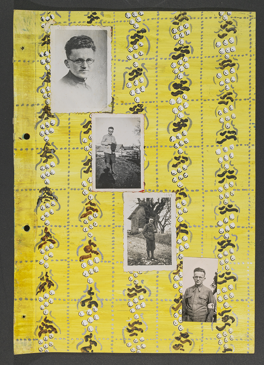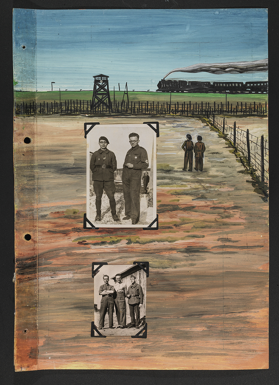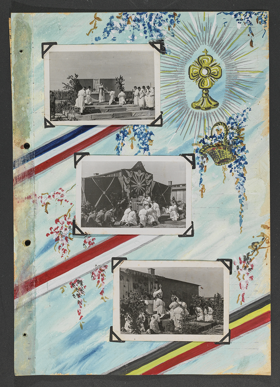 Le « Livre peint » d’Edmond Nachin, Stalag IA, à Stablack près de Königsberg (Prusse Orientale), peinture et photographies sur papier administratif