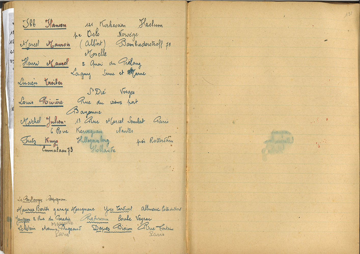 Pissoux (Doubs), Groß-Döbern (Haute-Silésie en Allemagne, aujourd’hui en voïvodie d’Opole en Pologne), Stalag I-A de Stablack (Prusse-Orientale en Allemagne, aujourd’hui en Varmie-Mazurie, Pologne), de 1932 aux années 1960, de nombreuses lettres datent de 1942 et 1943