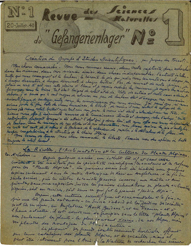 Revue des Sciences Naturelles du Gefangenenlager, n°1, 20 juillet 1940